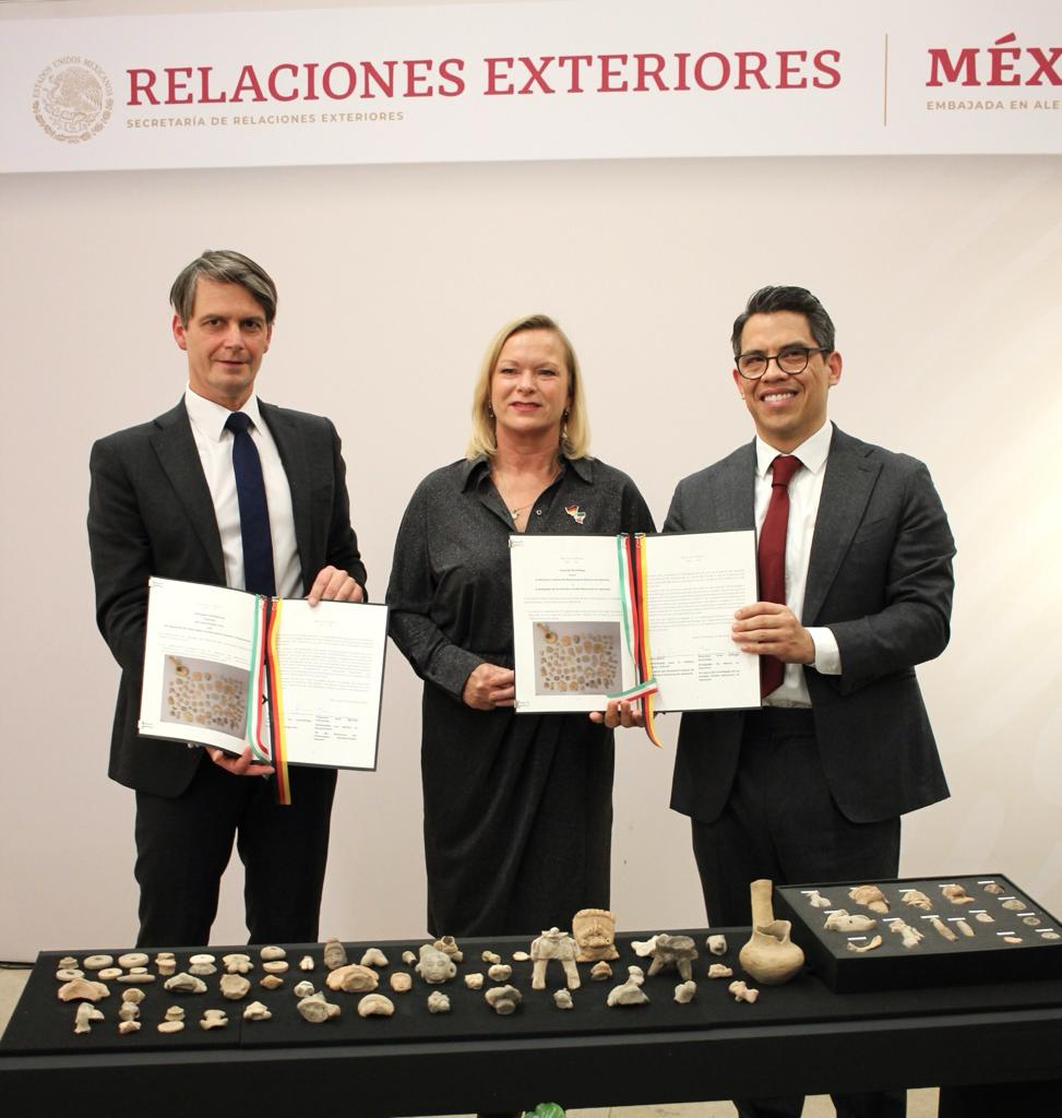 The reception ceremony was led by Mexican Ambassador Francisco Quiroga Fernandez and Stefan Rössel, Commissioner for Foreign Cultural Policy at the Federal Foreign Office of Germany. German society was commended for joining the efforts to prevent the trafficking, exhibition and illegal trade of cultural property.