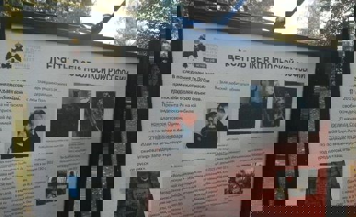 The display on Gogol Boulevard, described by Belsat as carrying “lies about Poland” and Russian propaganda, opened with State Duma deputy chairman Boris Chernyshev saying it shows how “hatred” toward Russia “formed in Poland over many generations.”