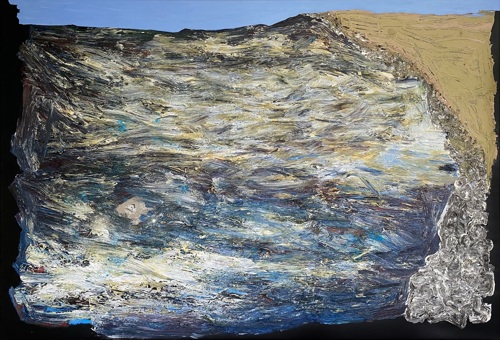 Traces of human presence are almost entirely absent from his oil paintings, which may contribute to the sense of calm conveyed by strong colors and gestural brushwork. In his most recent works, Tobias Wyrzykowski uses gouache on black-primed canvas, creating multi-dimensional pictorial spaces through a slow, layered process involving long drying times, revisions, reworking, and the deliberate re-pouring of paint. The paintings do not depict a concrete scene but instead offer a vague, washed-out, fragmented impression of landscape, into which horizons, stones, walls, and layers of earth appear to “drift.” This results in a controlled oscillation between mastery and release, between precision and chance, until each painting settles into its own rhythm. At the heart of his practice is the act of painting itself—color on canvas, inspired by nature but not bound to it.