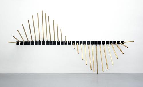 Ewa Axelrad, Shtamah #2, 2017, Ash wood flag poles, steel pole holders, dimensions variable