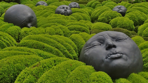 The hedges are interspersed with contemporary sculptures, some of them installed on a permanent basis – like Raindrops, a series of outsize resin heads by whimsical Catalan sculptor Samuel Salcedo (above), or Until The Word Is Gone, a terracotta sound installation by Russian duo Sergei Katran and Willi Melnikov.