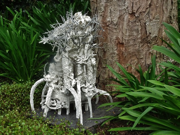 Half of the sculptors are from France, as you might expect given the transport logistics. Reflecting the owners’ Russian nationality, there is also a significant presence from the former Soviet Union, also including Buryat sculptor Dasha Namdakov, with a giant Buddha in Meditation (above); Kiev’s Nazar Bilyk with a resin, glass and fibre-glass figure entitled Rain; and Moscow-born, Paris-based Dasha Surovtseva, with an Untitled porcelain creation from her series Archives of Vegetation (below).