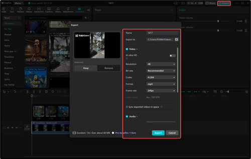 Before exporting, lock the video settings like resolution and frame rate as per your needs. Then, export the project in the desired format with CapCut Desktop Video Editor's settings.