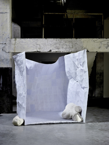 (aérocubes) paper and rough porselaine. Dimensions : 199 x 188 x 211 cm. 2017. © Jan Liegeois. Photo courtesy Axel Vervoordt Gallery