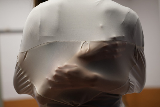 As part of the show, Vanheule was preparing a performance with twenty Korean actors. This physical contact was quickly called into question in the light of corona, and was reduced down to two actors, before the show was postponed. In the two-actor version of a New Embrace, “two performers in a large tongue-like veil of twelve meters burn themselves away in an embrace. The fabric of the long veil is similar to the fabric of a wedding dress, but a closer look reveals that the holes are burnt. The performers are two women who hug each other in a costume designed by Lenny Leleu that can only be worn by two people. The identity fades. Embrace and human contact, helping each other and letting go of the ego is the answer we should start from. The hug burns the veil away.”