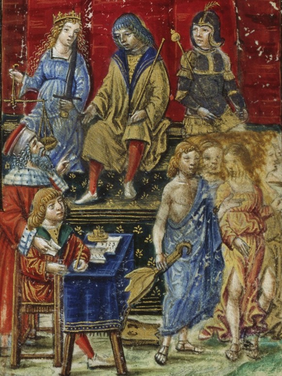 Allegory of Justice from Paolo e Daria (1495), lampooning Leonardo as a ginger-haired gay, image courtesy for Simon Hewitt